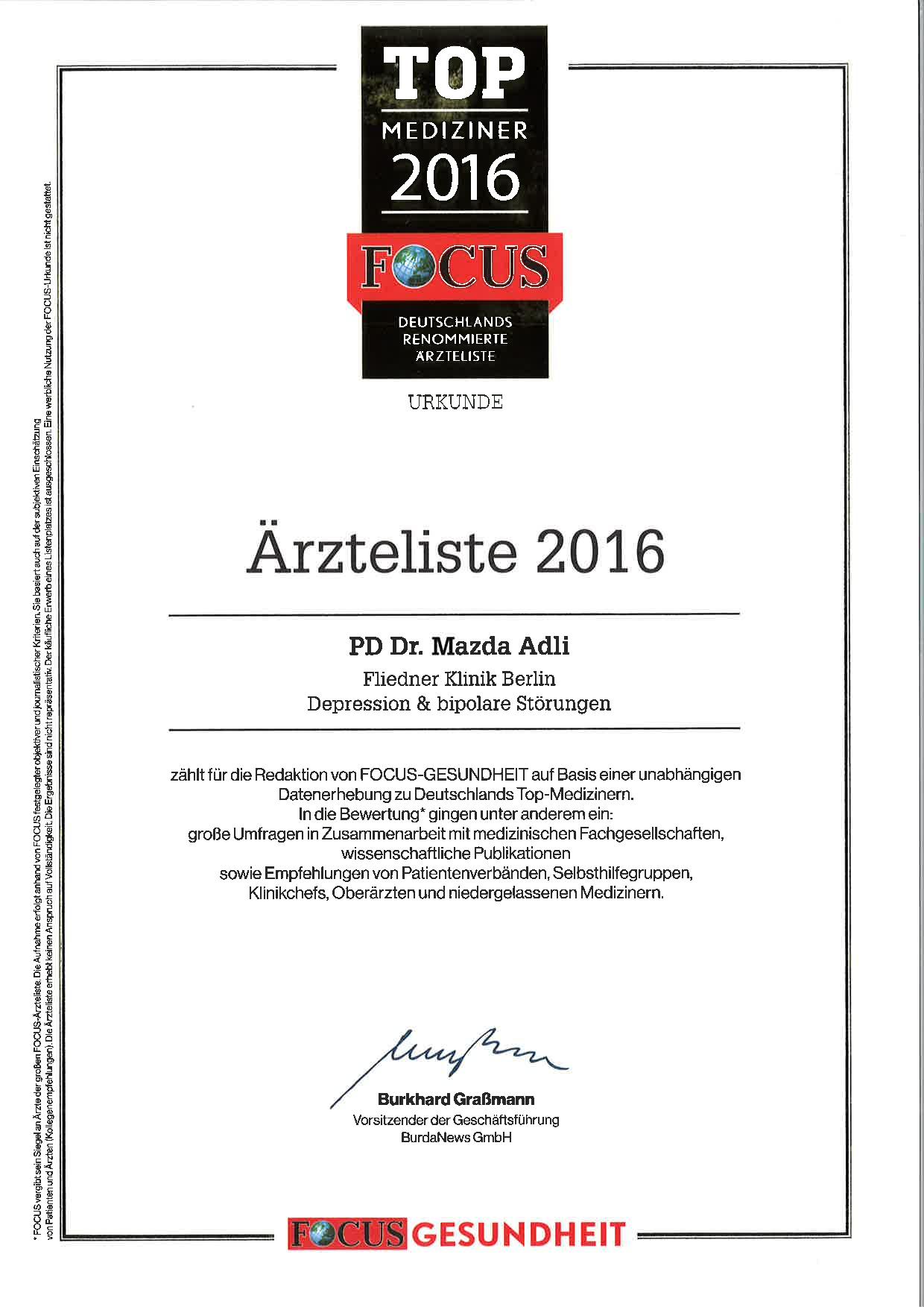 Published 28. June 2016 at 1240 × 1753 in 2016-06 Focus Ärzteliste Urkunde